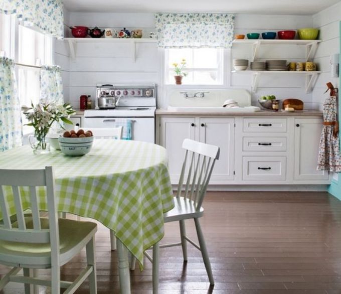 Shabby-chick là trào lưu thiết kế vintage kiểu Anh, phong cách này tận dụng những món đồ nội thất cũ kỹ, trải qua thời gian sử dụng lâu dài, kết hợp với nước sơn màu nhạt pastel tạo nên vẻ thanh lịch, trang nhã ngọt ngào và cổ điển. Phòng bếp dành cho chủ nhà với mang tính cách hướng nội, sâu sắc, yêu thích sự lãng mạn, tinh tế, cảm nhận được vẻ đẹp từ những điều không hoàn hảo.