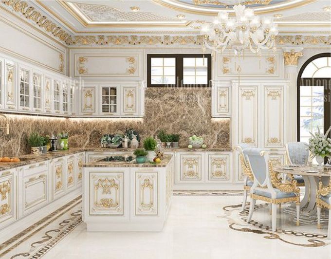 Trang trí nhà bếp phong cách cổ điển không thể thiếu đến hai vật liệu là gỗ và đá. Sự kết hợp giữa hai vật liệu truyền thống mang sức sống của thiên nhiên vào không gian phòng bếp. Tạo nên không gian gần gũi, ấm cúng cho gia đình của bạn.