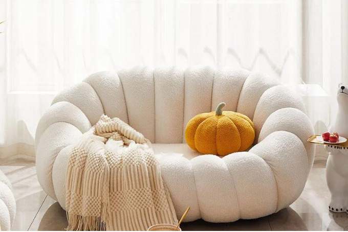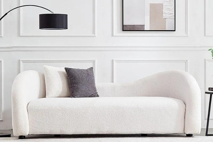 Vải bouclé lông cừu là sự kết hợp hoàn hảo cho các chi tiết cong và không đối xứng, chẳng hạn như chiếc ghế sofa bằng lông cừu này của Kibi. Được thiết kế với các cánh tay cong và chân hiệu ứng vàng, chiếc ghế sofa bouclé này thể hiện sự sang trọng cao cấp.