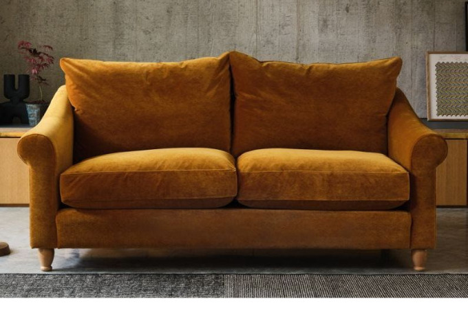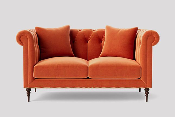 Chúng ta thậm chí có cần phải nói bất cứ điều gì về chiếc ghế sofa màu cam sang trọng này không? Tràn ngập sự sang trọng lấy cảm hứng từ cổ điển, nó mang đến sự thoải mái và phong cách ở mức độ cân bằng. Chân đế được chạm khắc, tay cuộn và bọc nhung đơn giản toát lên vẻ cổ điển.