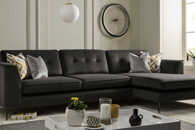 Sofa nhung không chỉ giới hạn trong phong cách cổ điển, truyền thống. Nếu bạn có không gian, hãy đóng khung phòng khách của bạn với chiếc ghế sofa góc màu than này. Với phong cách thoải mái, đường nét mượt mà và chân mạ crôm hiện đại, đây là sự kết hợp hoàn hảo giữa phong cách và chất liệu.