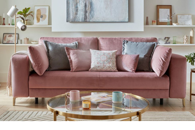 Giữ cho nó đẹp bằng màu hồng với giường sofa nhung Darcy từ dòng sản phẩm House Beautiful x DFS. Giường sofa hiện đại này cung cấp không gian rộng rãi cùng với các cánh tay có thể tháo rời khi bạn cần biến nó thành một chiếc giường êm ái. Phong cách với đệm bạc và hồng cho một cái nhìn gắn kết.