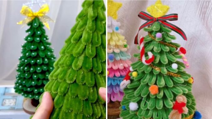 Chỉ cần vài bước đơn giản, bạn đã hoàn thành cây thông noel kẽm nhung xinh xắn, đáng yêu rồi đấy. Cây thông như một cục kẹo bông dễ thương, lung linh trong ánh đèn. Có thể dùng cây thông để trang trí bàn làm việc, nóc tủ lạnh,... tạo không khí noel cho không gian của bạn rồi đấy.