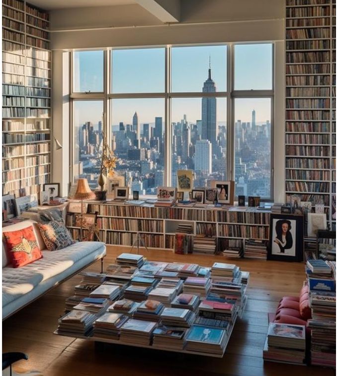 Thiết kế không gian kệ sách và kệ treo tường theo hình cây để trưng bày sách báo, đặt thêm vài chậu cây xanh nhỏ và một vài chiếc tượng decor mà mình yêu thích. Bố trí thêm một bộ bàn sofa nhỏ vừa là nơi đọc sách, vừa là nơi nghỉ ngơi đầy tiện lợi.