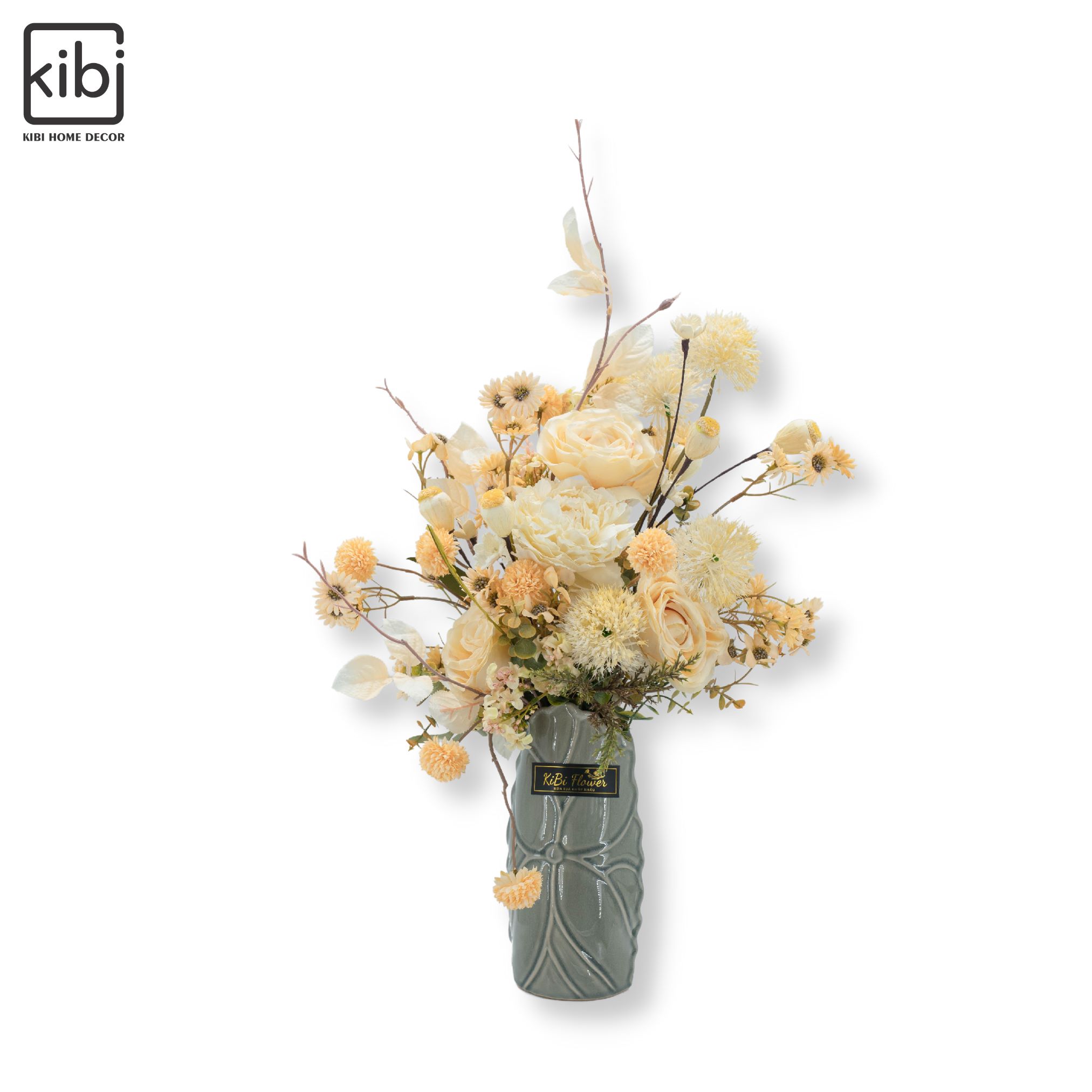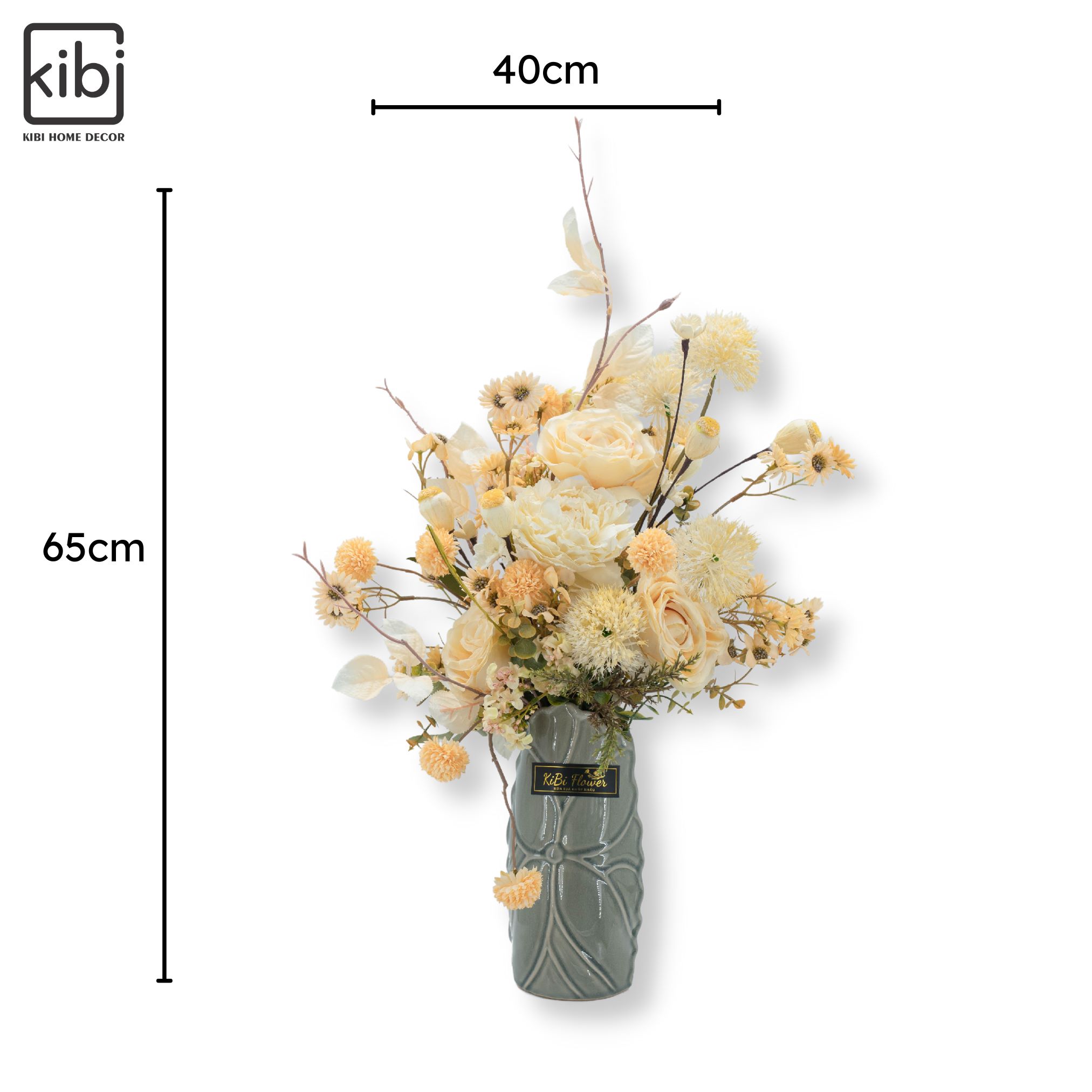 Chất liệu: Hoa lụa cao cấp, nhựa Polyster, bình Gốm sứ