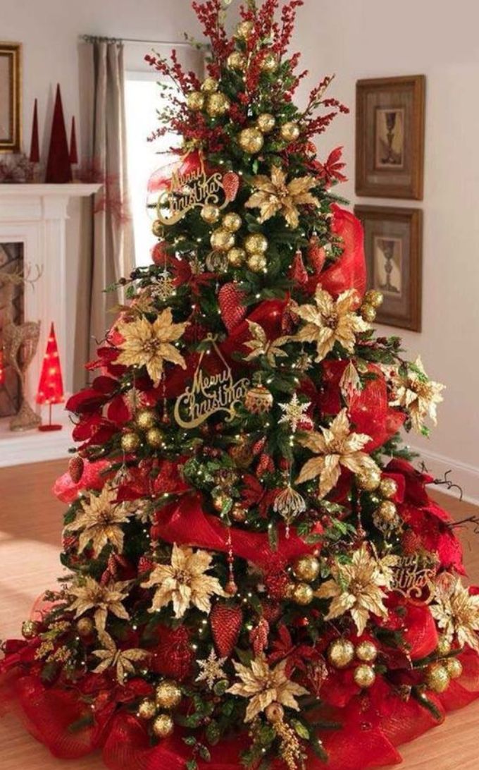 Nếu bạn yêu thích phong cách quý tộc, sang trọng thì ý tưởng trang trí cây thông bằng những phụ kiện mạ vàng sẽ là lựa chọn cực kỳ phù hợp cho bạn đấy. Trang hoàng cây thông bằng tông màu vàng chủ đạo sẽ khiến mọi người vô cùng bất ngờ bởi độ sang chảnh toát ra từ cây thông đặc biệt này đấy