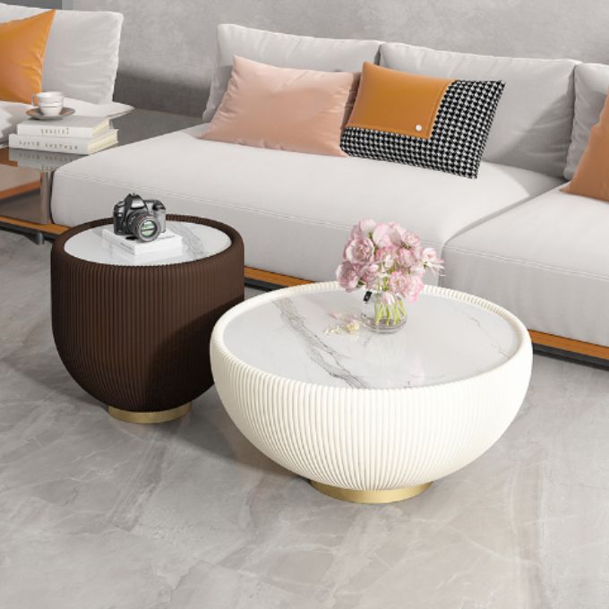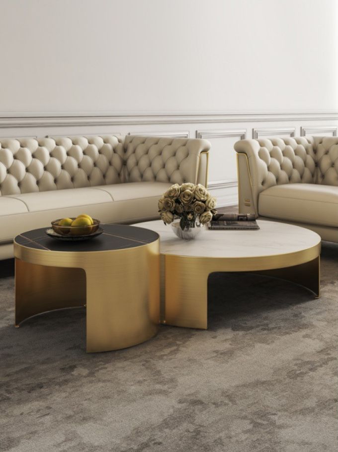 Sự kết hợp độc đáo giữa mặt đá tự nhiên và da PU đem đến nét ấn tượng cho chiếc bàn trà tròn. Mẫu ban trà này là một trong những mẫu bàn trà tạo nên phong cách mới cho không gian nhà bạn. Tính thẩm mỹ cao, dễ thu hút ánh nhìn, đặt chiếc bàn trong không gian phòng khách đem đến sự năng động và ngập trà tính nghệ thuật