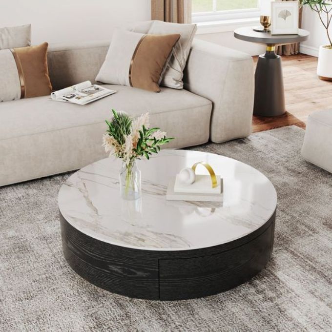 3. Bàn trà tròn mặt đá thiết kế phong cách hiện đại