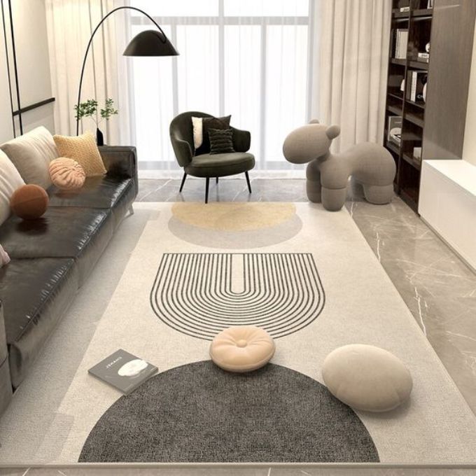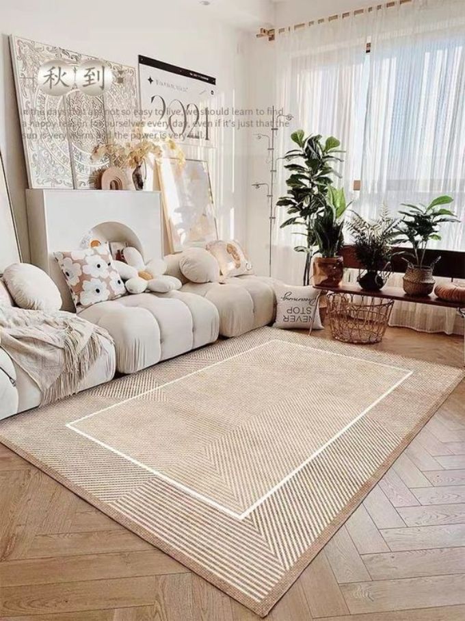 - Thảm trải sàn 1.2 x1.8m: Thảm cỡ nhỏ, chỉ đủ đặt bàn trà, người ngồi sẽ không thể đặt chân lên thảm