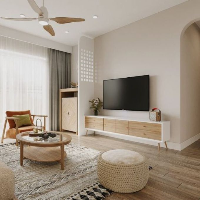 Vẻ đẹp mộc mạc, bình dị chính là đặc điểm nổi bật của phong cách Bắc Âu này. Phòng cách này đề cao tính ứng dụng, mang lại cảm giác gần gũi và dễ chiu. Đồ nội thất decor phòng khách thường mang chất liệu tự nhiên từ mây, tre, gỗ, vải,.. và ưu tiên các tone màu sáng như be, kem,...