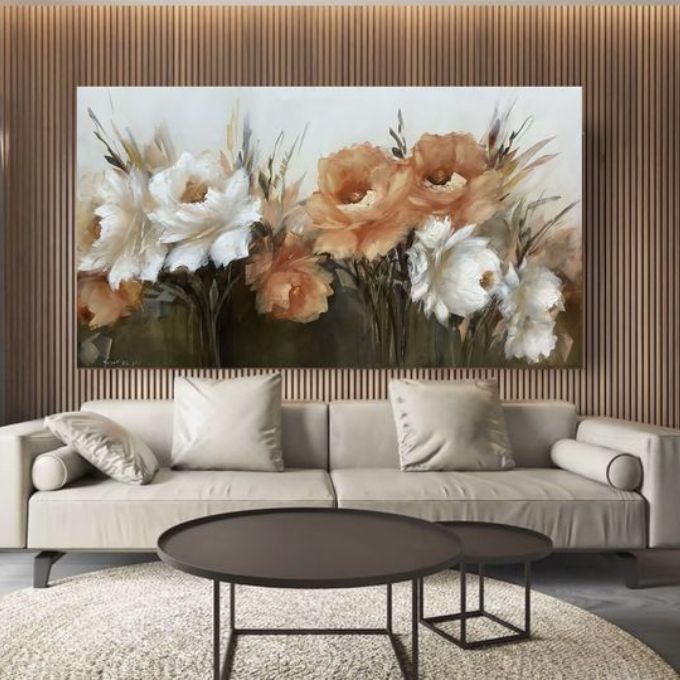 Tranh sơn dầu giúp tăng tính thẩm mỹ cũng như giá trị nghệ thuật cho căn nhà, thể hiện được cá tính thẩm mỹ của gia chủ. Một bức tranh sơn dầu đằng sau bức sofa có thể tạo nên điểm nhấn cho phòng khách những vẫn bảo đảm hài hoà với tổng thể không gian.
