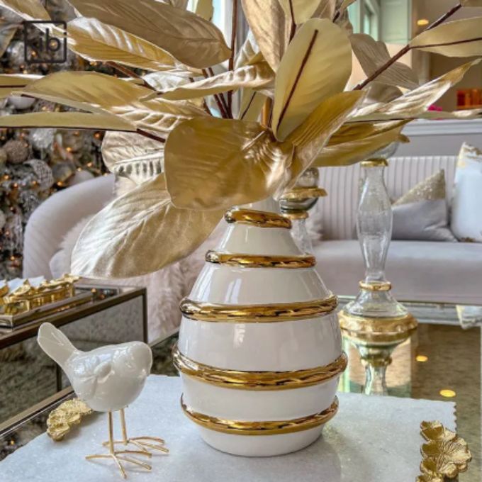3.4. Mẫu bình hoa decor phòng khách ấn tượng bằng gốm mạ vàng bạc
