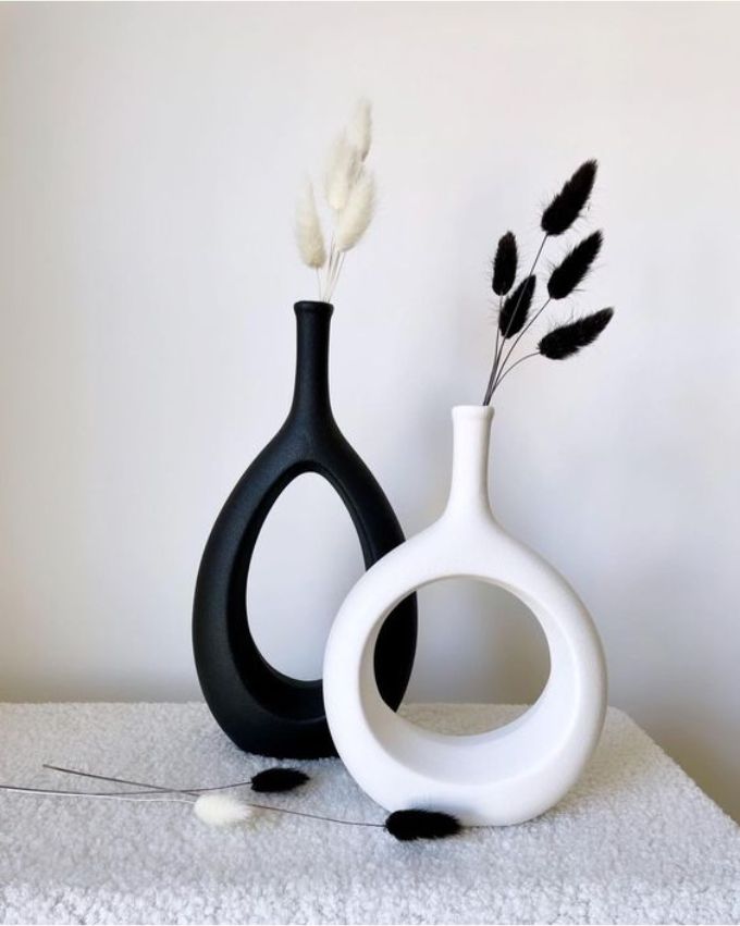 Hiện nay, xu hướng dạng bình hoa bằng gốm với gam màu trắng đen, thiết kế đa dạng mẫu mã đang trở nên phổ biến. Đặc biệt là đối với những không gian theo phong cách tối giản. Nó rất phù hợp với cách cắm hoa nghệ thuật. Đặt bình hoa trong không gian của bạn sẽ khiến cho không gian trở nên nghệ thuật, nâng tầng đẳng cấp cho căn phòng của bạn