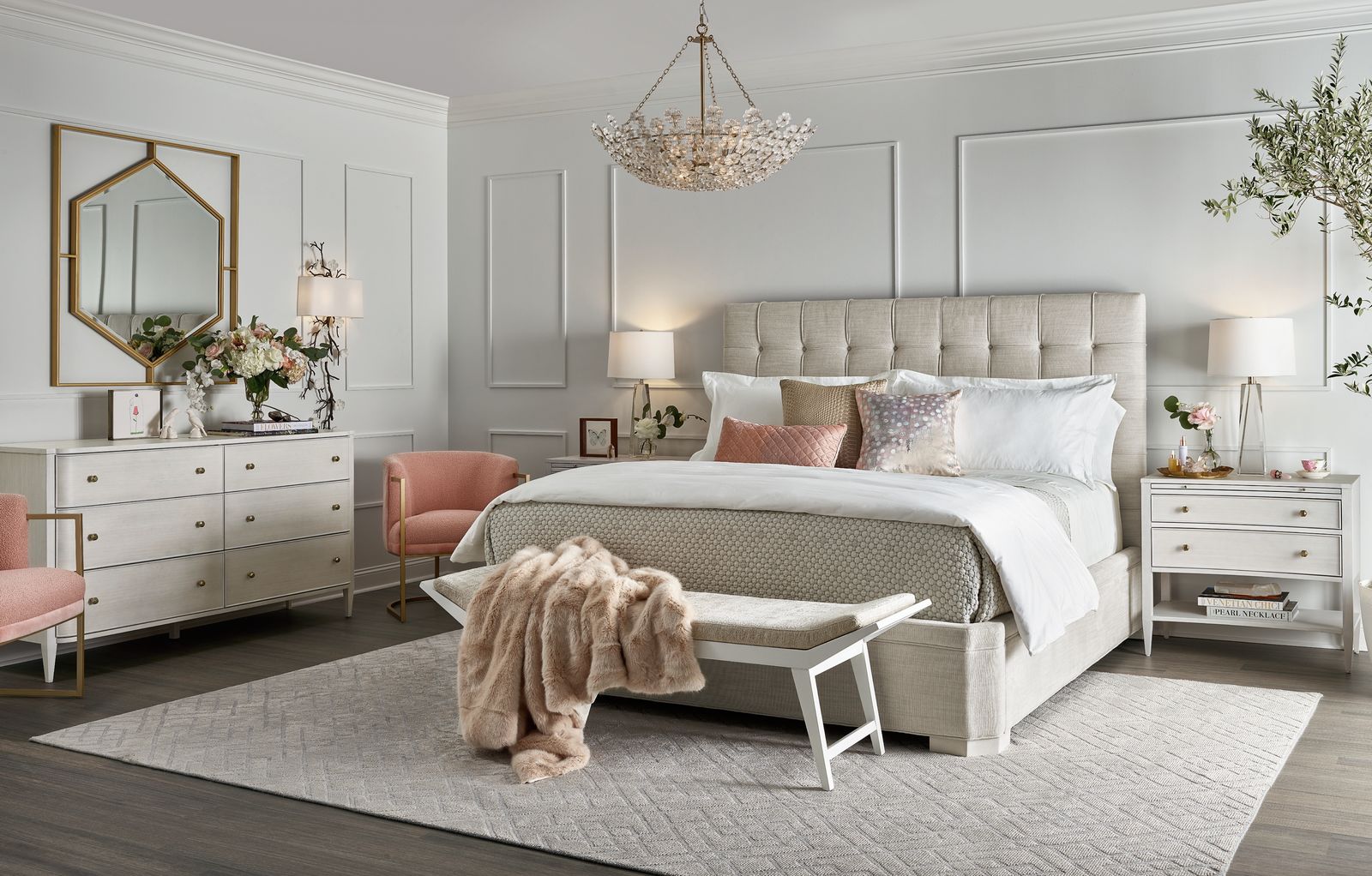 Cách đặt này cho phép tăng thêm tính thẩm mỹ tổng thể sàn nhà, đồng thời tạo khung cho tấm thảm ấm cúng mà bạn chọn.