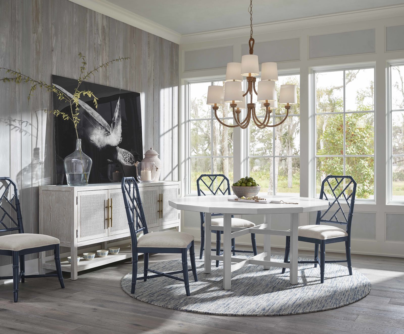 Nếu bàn ăn của bạn có hình tròn, tốt nhất bạn nên có một tấm thảm tròn bên dưới. Điều này giúp tăng thêm tính thẩm mỹ tự nhiên cho chiếc bàn của bạn đồng thời phản ánh độ cong và đường nét mềm mại của nó.