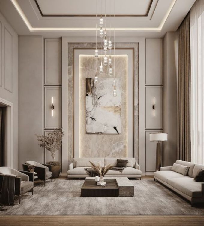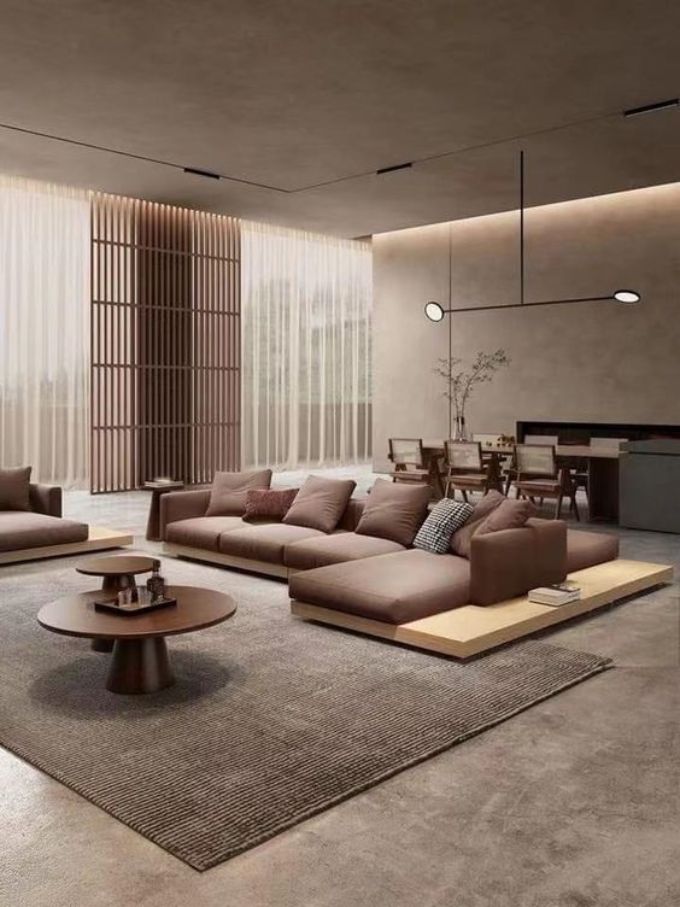 Theo cách này, thảm trải sàn được trải riêng biệt tại trung tâm bàn trà, ghế sofa được kê sát xung quanh bao thảm. Đây là cách nhấn mạnh khu vực trung tâm, tạo điểm nổi bật cho không gian
