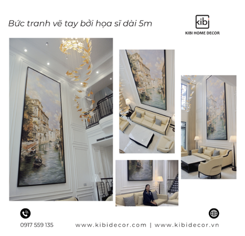 Và điểm nhấn lớn nhất – Cũng là chi tiết khiến phòng khách “có hồn” – Chính là bức tranh vẽ tay dài 5m do họa sĩ cộng tác của KiBi thực hiện.