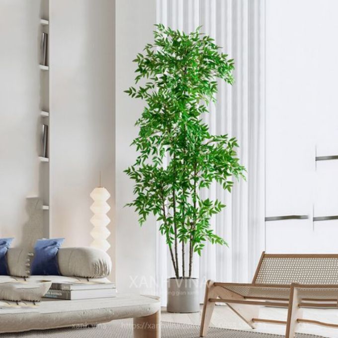 Cây nam thiên trúc có thân và lá khá mảnh khảnh nhưng vẫn tạo cảm giác cứng cáp. Bạn có thế kết hợp với nhiều loại cây, để làm vách ngăn cho khu vực cố định nào đó. Màu xanh của cây tạo cảm giác thư giãn dễ chịu, hơn nữa cũng rất dễ bảo quản và thay đổi cách bố trí khi cần.