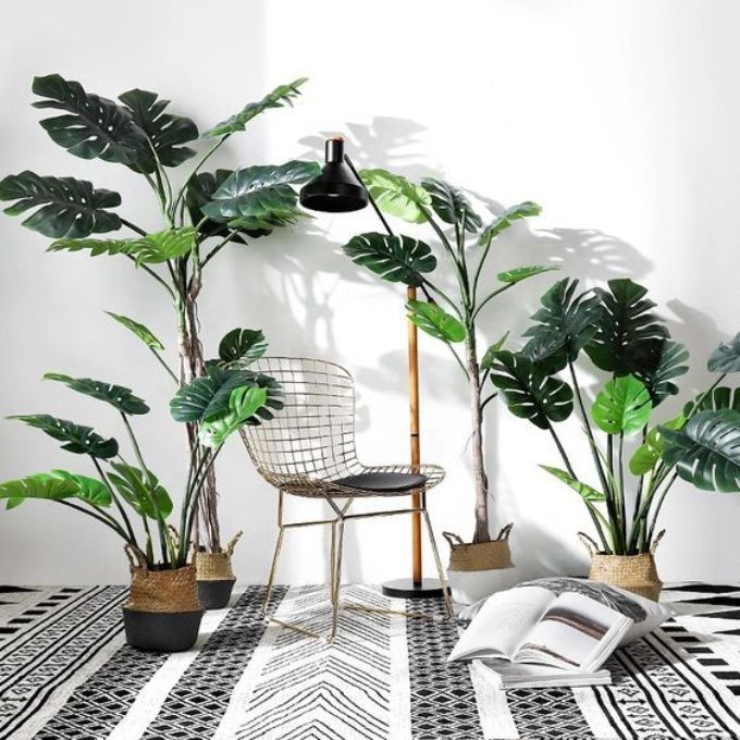 Cây trầu bà hay cây lá xẻ là một loại cây vô cùng phổ biến trong trang trí nội thất. Tuy nhiên, người ta thường sử dụng cây trầu bà giả trong các trường hợp không có thời gian và điều kiện để chăm sóc cây thật. Được làm từ chất liệu nhựa hay sợi tổng hợp, cây trầu bà mang lại cho không gian vẻ đẹp gần gũi với thiên nhiên. Loại cây này thường phù hợp bố trí trong các không gian phòng khách, phòng ngủ hay văn phòng làm việc,..