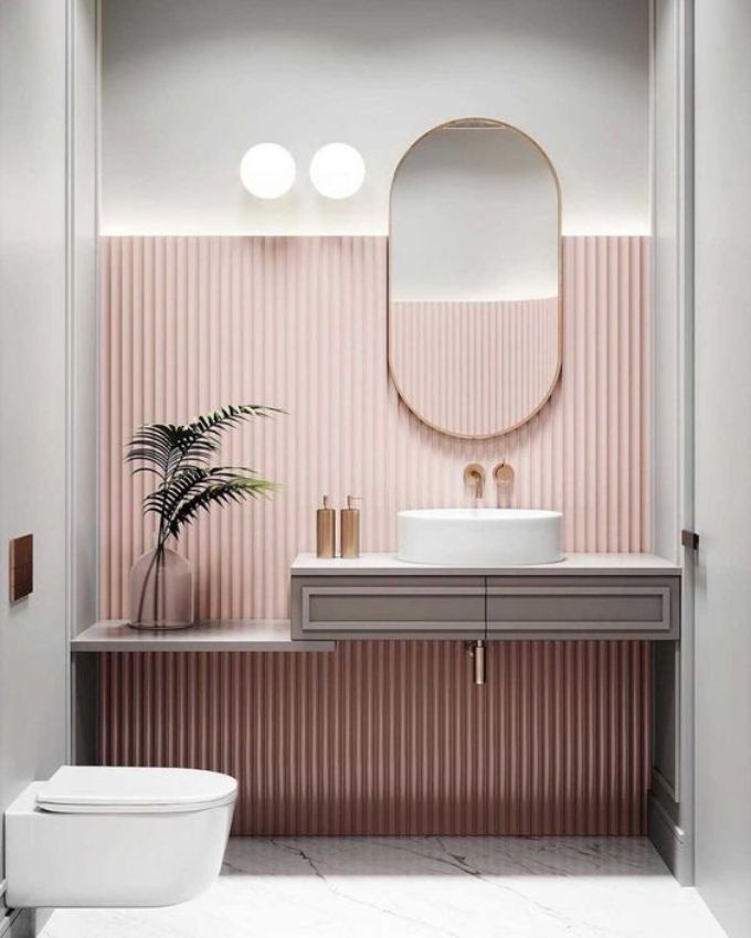 Những gam màu pastel đang trở thành xu hướng trong thiết kế nội thất hiện nay. Các tone màu pastel giúp tạo hiệu ứng hay biến không gian của bạn trở nên cực kỳ thư giãn, thoải mái. Việc lựa chọn các đồ nội thất phòng tắm có tone màu pastel theo màu sơn tường cùng là một ý tưởng thú vị để decor nhà tắm sáng tạo đấy.